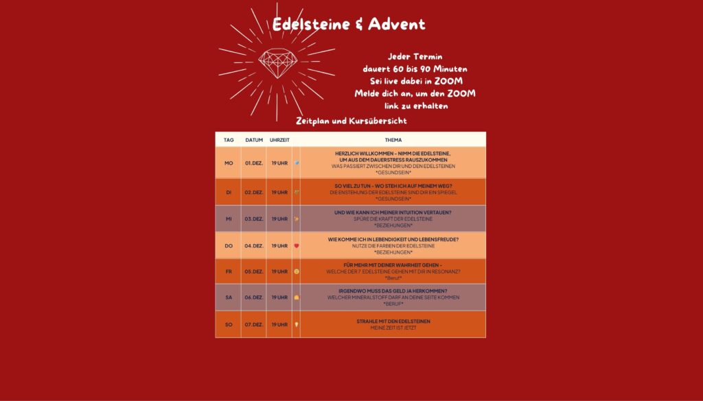 Herzlich willkommen zu ‚Edelsteine & Advent‘ Drücke hier auf den link, um auf meine Landingpage zu kommen, die dir mehr an Informationen gibt. https://edelsteine-advent-ik-11-2025.carrd.co